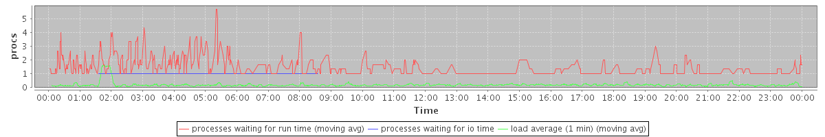 avg(processes waiting for run time) = 0.37 avg(processes waiting for io time) = 0.01 avg(load average (1 min)) = 0.20