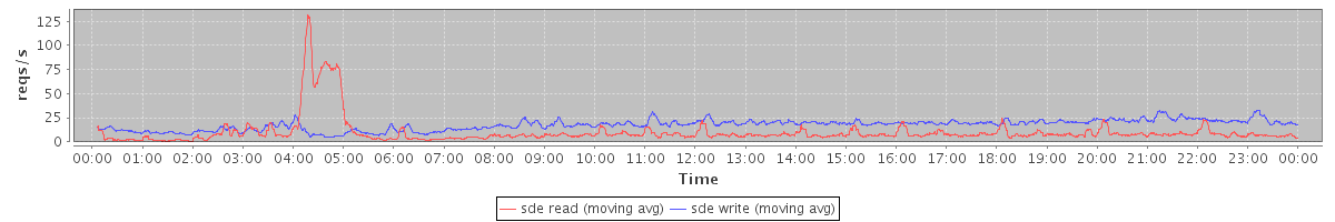 avg(sda read) = 28.36 avg(sda write) = 285.60