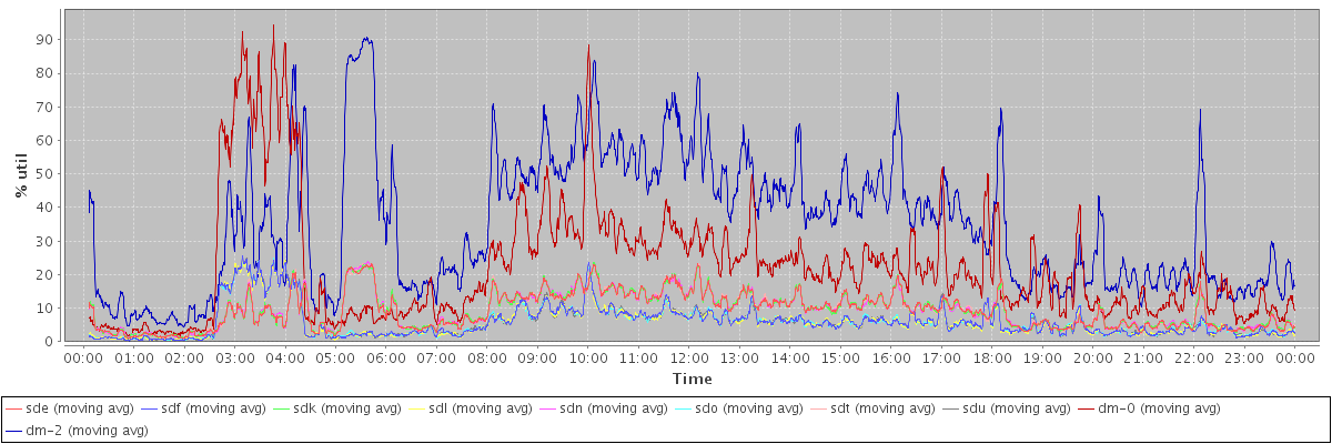 avg(sde) = 9.11 avg(sdf) = 5.89 avg(sdk) = 9.12 avg(sdl) = 5.80 avg(sdn) = 9.15 avg(sdo) = 5.83 avg(sdt) = 9.12 avg(sdu) = 5.86 avg(dm-0) = 22.01 avg(dm-2) = 34.93