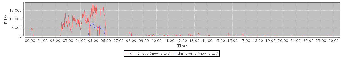 avg(dm-1 read) = 1398.20 avg(dm-1 write) = 335.23