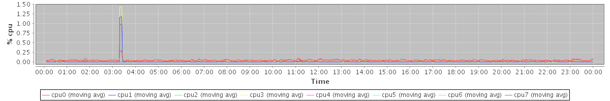 avg(cpu0) = 0.03 avg(cpu1) = 0.05 avg(cpu2) = 0.14 avg(cpu3) = 0.08 avg(cpu4) = 0.28 avg(cpu5) = 0.01 avg(cpu6) = 0.02 avg(cpu7) = 0.03