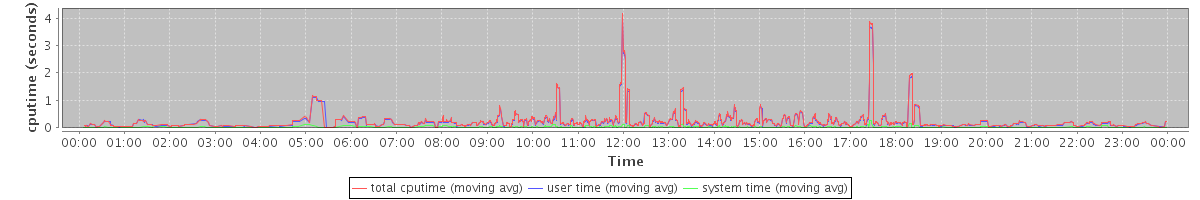 avg(total cputime) = 0.13 avg(user time) = 0.12 avg(system time) = 0.01
