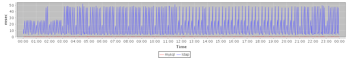 avg(mysql) = 0.23 avg(ldap) = 7.09