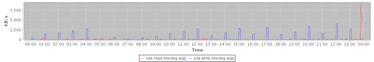 avg(sda read) = 20.38 avg(sda write) = 252.65
