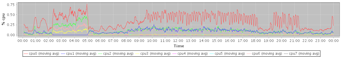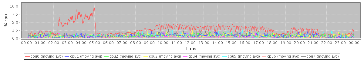 avg(cpu0) = 0.34 avg(cpu1) = 0.08 avg(cpu2) = 0.11 avg(cpu3) = 0.01 avg(cpu4) = 0.00 avg(cpu5) = 0.00 avg(cpu6) = 0.09 avg(cpu7) = 0.00