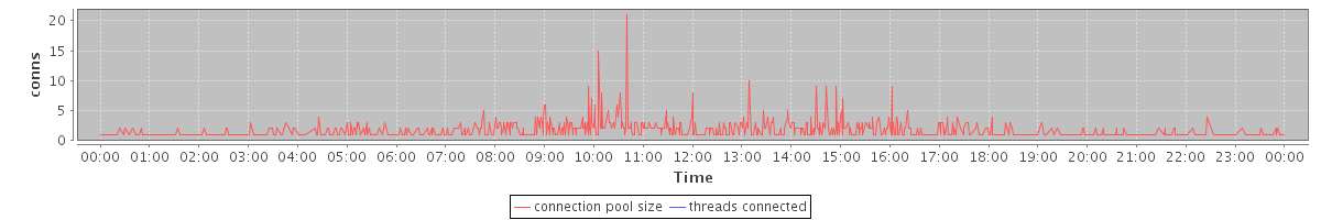 avg(connection pool size) = 0.98 avg(threads connected) = 0.00