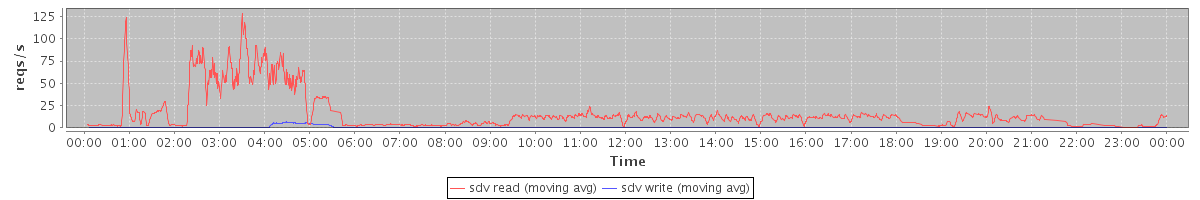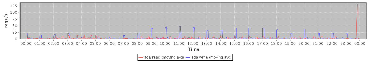 avg(sda read) = 31.54 avg(sda write) = 466.54