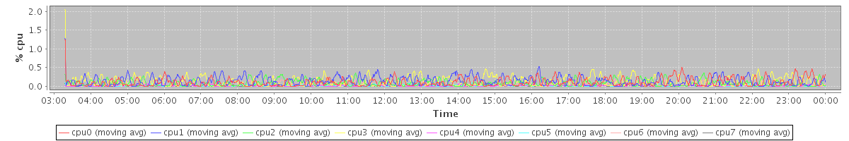 avg(cpu0) = 0.03 avg(cpu1) = 0.03 avg(cpu2) = 0.03 avg(cpu3) = 0.04 avg(cpu4) = 0.00 avg(cpu5) = 0.00 avg(cpu6) = 0.01 avg(cpu7) = 0.01