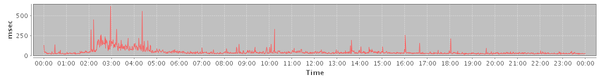 max(SearchRequest) = 578.00 max(MsgActionRequest.delete) = 257.00 max(NoOpRequest) = 235.00 max(MsgActionRequest.trash) = 232.00 max(ModifyContactRequest) = 199.00 max(GetMsgRequest) = 237.00 max(SetAppointmentRequest) = 385.00 max(GetFolderRequest) = 617.00 max(SyncRequest) = 491.00 max(GetAppointmentRequest) = 1596.00