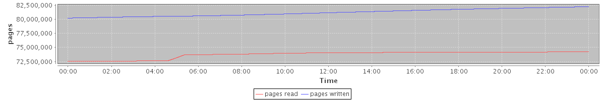 avg(pages read) = 73744397.63 avg(pages written) = 81194504.69