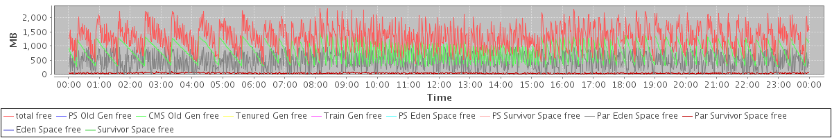 avg(total free) = 1317.00 avg(PS Old Gen free) = 0.00 avg(CMS Old Gen free) = 791.67 avg(Tenured Gen free) = 0.00 avg(Train Gen free) = 0.00 avg(PS Eden Space free) = 0.00 avg(PS Survivor Space free) = 0.00 avg(Par Eden Space free) = 484.67 avg(Par Survivor Space free) = 40.66 avg(Eden Space free) = 0.00 avg(Survivor Space free) = 0.00
