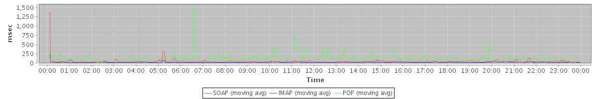 Host zm09.stanford.edu: Mailboxd: Response Time by Client Protocol