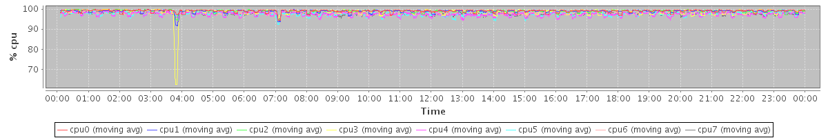 avg(cpu0) = 0.05 avg(cpu1) = 0.15 avg(cpu2) = 0.08 avg(cpu3) = 0.22 avg(cpu4) = 0.02 avg(cpu5) = 0.01 avg(cpu6) = 0.02 avg(cpu7) = 0.00