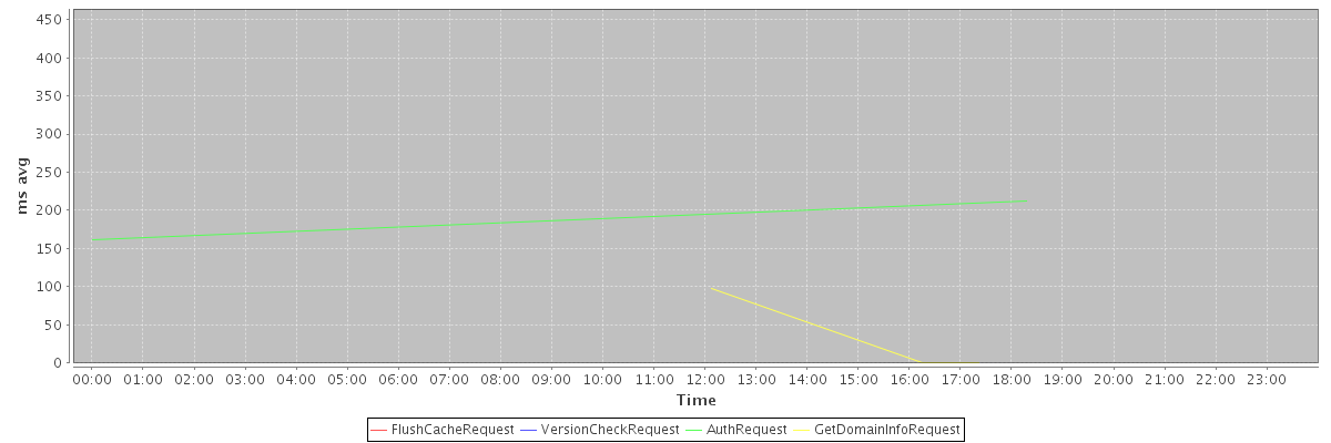 avg(FlushCacheRequest) = 50.00 avg(VersionCheckRequest) = 442.00 avg(AuthRequest) = 187.00 avg(GetDomainInfoRequest) = 9.09