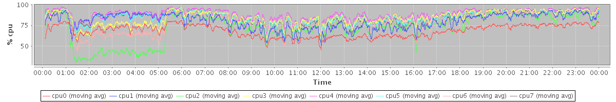 avg(cpu0) = 68.34 avg(cpu1) = 80.14 avg(cpu2) = 71.65 avg(cpu3) = 84.43 avg(cpu4) = 88.82 avg(cpu5) = 85.34 avg(cpu6) = 76.79 avg(cpu7) = 85.04