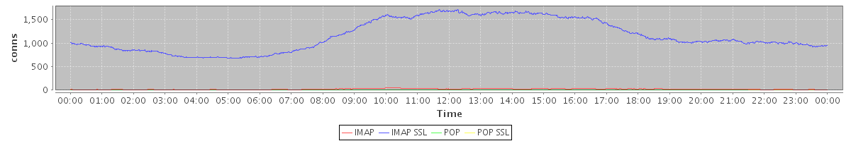 Host zm04.stanford.edu: Mailboxd: Active Connections by Client Protocol