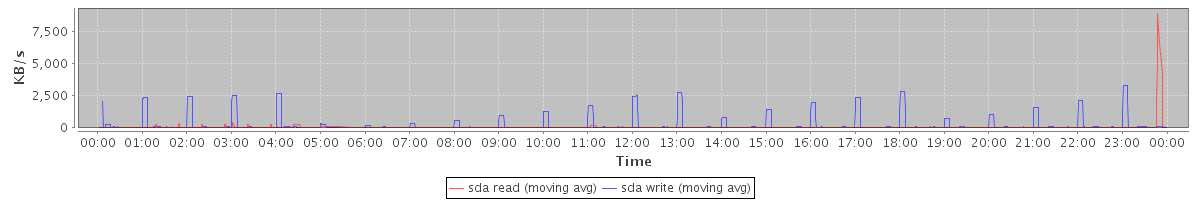 avg(sda read) = 19.18 avg(sda write) = 240.93