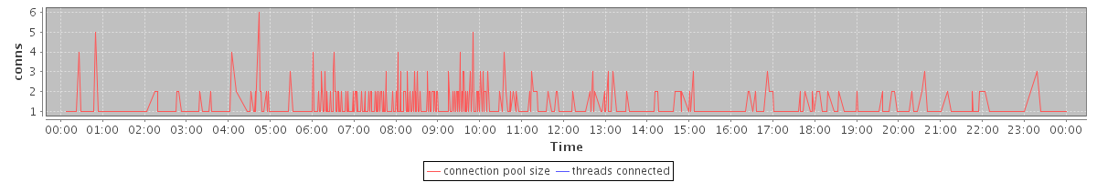 avg(connection pool size) = 0.56 avg(threads connected) = 0.00
