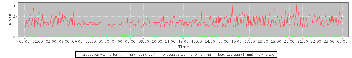 avg(processes waiting for run time) = 0.62 avg(processes waiting for io time) = 0.00 avg(load average (1 min)) = 0.12