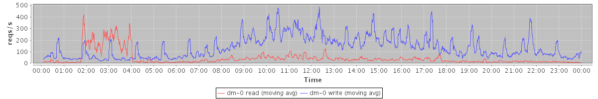 avg(dm-0 read) = 957.28 avg(dm-0 write) = 558.78