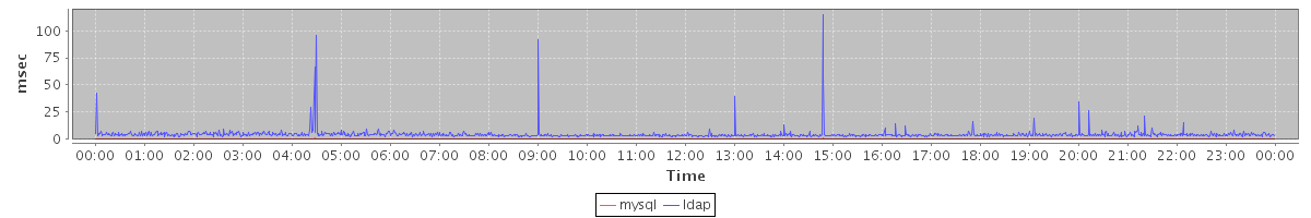 avg(mysql) = 0.19 avg(ldap) = 4.57