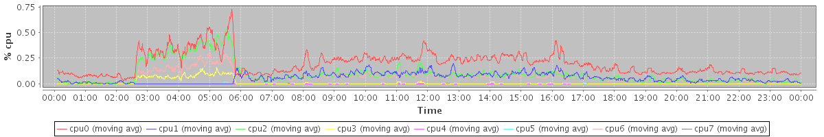 avg(cpu0) = 0.20 avg(cpu1) = 0.06 avg(cpu2) = 0.10 avg(cpu3) = 0.01 avg(cpu4) = 0.00 avg(cpu5) = 0.00 avg(cpu6) = 0.07 avg(cpu7) = 0.00