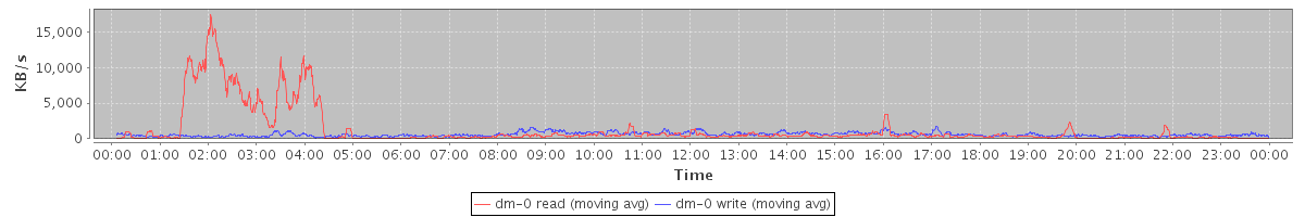 avg(dm-1 read) = 19.63 avg(dm-1 write) = 86.47
