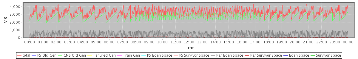 avg(total) = 3285.49 avg(PS Old Gen) = 0.00 avg(CMS Old Gen) = 2730.47 avg(Tenured Gen) = 0.00 avg(Train Gen) = 0.00 avg(PS Eden Space) = 0.00 avg(PS Survivor Space) = 0.00 avg(Par Eden Space) = 479.75 avg(Par Survivor Space) = 75.27 avg(Eden Space) = 0.00 avg(Survivor Space) = 0.00