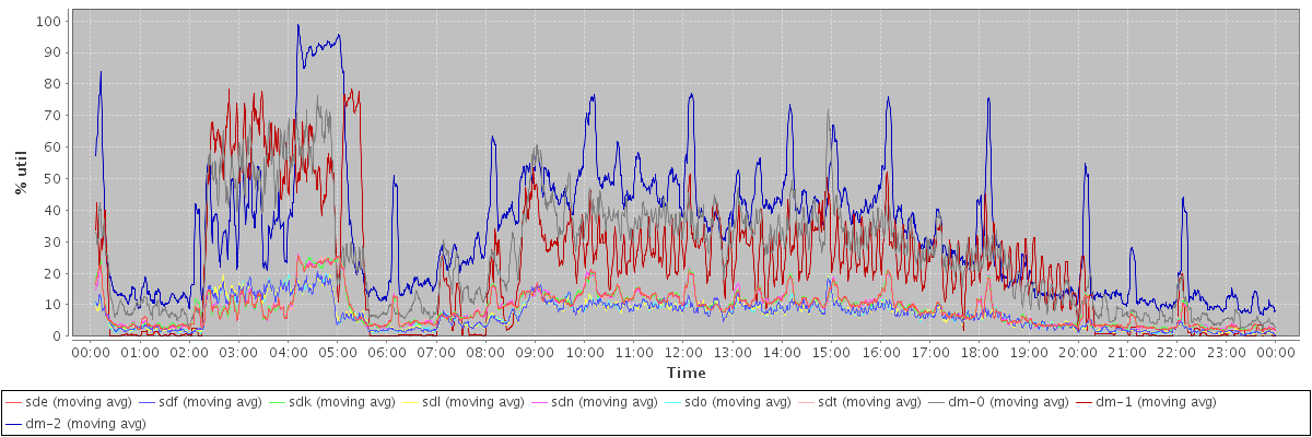 avg(sde) = 8.78 avg(sdf) = 6.80 avg(sdk) = 8.82 avg(sdl) = 6.79 avg(sdn) = 8.80 avg(sdo) = 6.79 avg(sdt) = 8.79 avg(dm-0) = 25.95 avg(dm-1) = 22.05 avg(dm-2) = 33.79
