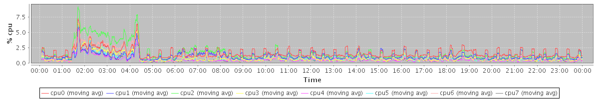 avg(cpu0) = 0.11 avg(cpu1) = 0.02 avg(cpu2) = 0.06 avg(cpu3) = 0.01 avg(cpu4) = 0.00 avg(cpu5) = 0.00 avg(cpu6) = 0.03 avg(cpu7) = 0.00