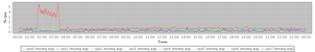 avg(cpu0) = 0.09 avg(cpu1) = 0.01 avg(cpu2) = 0.04 avg(cpu3) = 0.01 avg(cpu4) = 0.00 avg(cpu5) = 0.00 avg(cpu6) = 0.02 avg(cpu7) = 0.00
