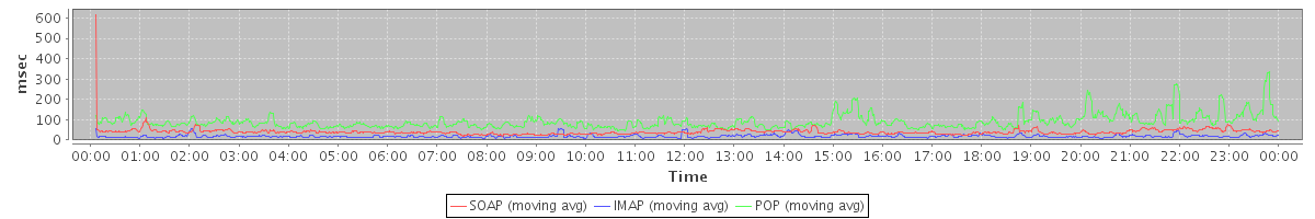 Host zm03.stanford.edu: Mailboxd: Response Time by Client Protocol
