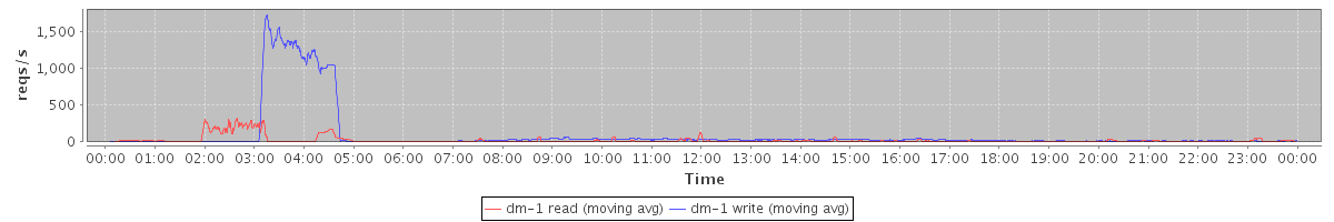 avg(dm-1 read) = 17.26 avg(dm-1 write) = 96.74