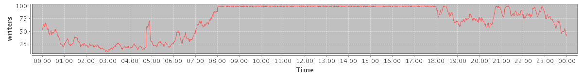avg(user) = 33.68 avg(sys) = 1.53 avg(idle) = 58.38 avg(iowait) = 5.71 avg(nice) = 0.00 avg(irq) = 0.06 avg(softirq) = 0.64