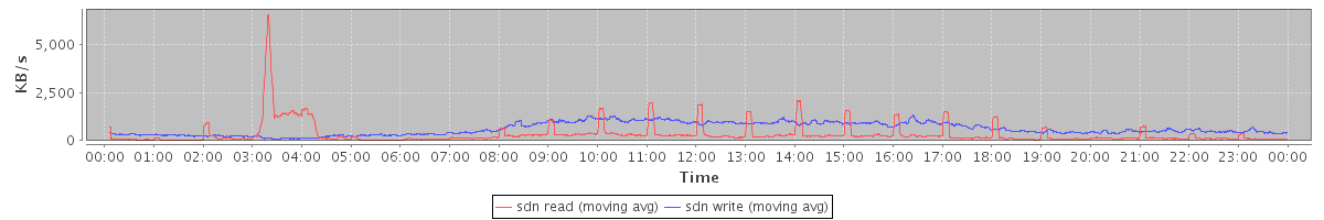avg(sda read) = 33.91 avg(sda write) = 636.41