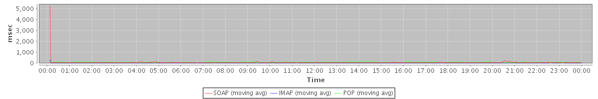 Host zm01.stanford.edu: Mailboxd: Response Time by Client Protocol