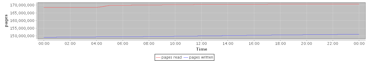 avg(pages read) = 170053707.67 avg(pages written) = 150017792.17
