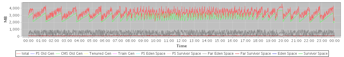 avg(total) = 3319.76 avg(PS Old Gen) = 0.00 avg(CMS Old Gen) = 2748.81 avg(Tenured Gen) = 0.00 avg(Train Gen) = 0.00 avg(PS Eden Space) = 0.00 avg(PS Survivor Space) = 0.00 avg(Par Eden Space) = 485.83 avg(Par Survivor Space) = 85.12 avg(Eden Space) = 0.00 avg(Survivor Space) = 0.00
