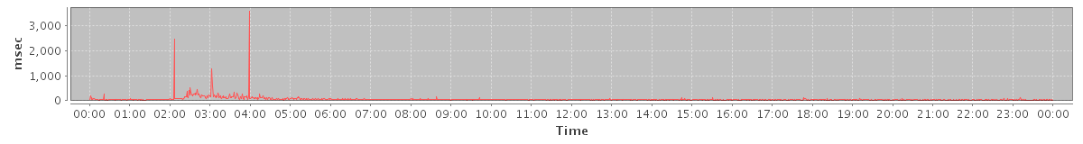 avg(SendMsgRequest) = 263.10 avg(AutoCompleteGalRequest) = 126.50 avg(BackupQueryRequest) = 938.80 avg(GetInfoRequest) = 163.97 avg(SendInviteReplyRequest) = 315.50 avg(AutoCompleteRequest) = 551.10 avg(SearchGalRequest) = 633.68 avg(FolderActionRequest.empty) = 251.43 avg(BackupRequest) = 6643.50 avg(GetQuotaUsageRequest) = 4090.00