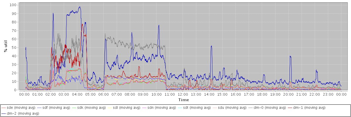 avg(sde) = 5.84 avg(sdf) = 4.92 avg(sdk) = 5.80 avg(sdl) = 4.94 avg(sdn) = 5.84 avg(sdt) = 5.85 avg(sdu) = 4.91 avg(dm-0) = 19.04 avg(dm-1) = 8.77 avg(dm-2) = 22.90