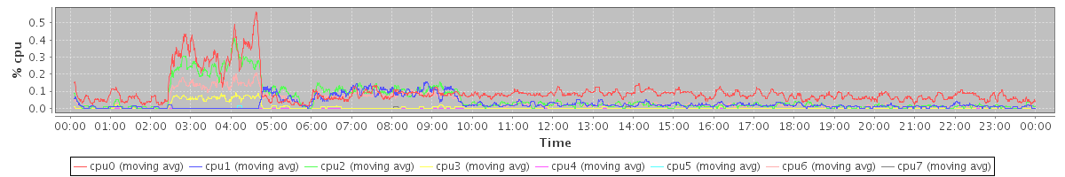 avg(cpu0) = 0.10 avg(cpu1) = 0.03 avg(cpu2) = 0.05 avg(cpu3) = 0.01 avg(cpu4) = 0.00 avg(cpu5) = 0.00 avg(cpu6) = 0.04 avg(cpu7) = 0.00