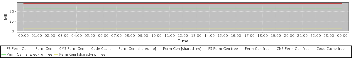 avg(PS Perm Gen) = 0.00 avg(Perm Gen) = 0.00 avg(CMS Perm Gen) = 58.04 avg(Code Cache) = 7.70 avg(Perm Gen [shared-ro]) = 0.00 avg(Perm Gen [shared-rw]) = 0.00 avg(PS Perm Gen free) = 0.00 avg(Perm Gen free) = 0.00 avg(CMS Perm Gen free) = 69.96 avg(Code Cache free) = 0.11 avg(Perm Gen [shared-ro] free) = 0.00 avg(Perm Gen [shared-rw] free) = 0.00