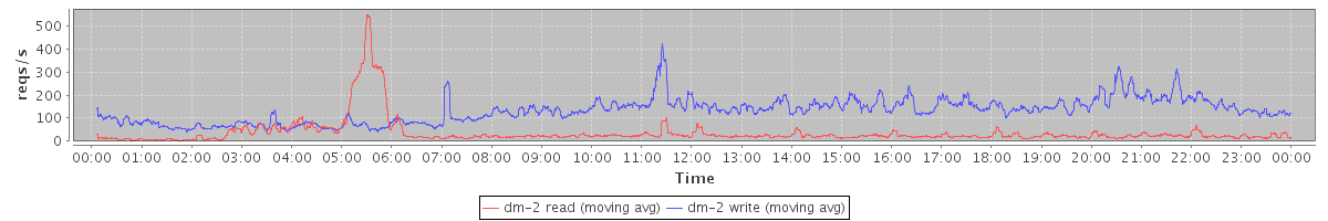 avg(dm-2 read) = 35.79 avg(dm-2 write) = 132.21