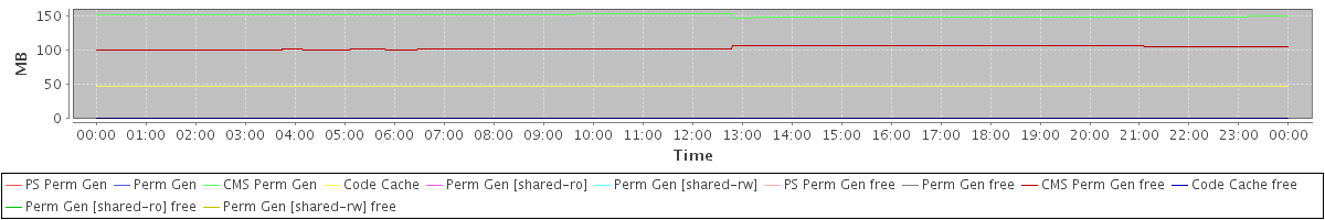 avg(PS Perm Gen) = 0.00 avg(Perm Gen) = 0.00 avg(CMS Perm Gen) = 149.81 avg(Code Cache) = 47.50 avg(Perm Gen [shared-ro]) = 0.00 avg(Perm Gen [shared-rw]) = 0.00 avg(PS Perm Gen free) = 0.00 avg(Perm Gen free) = 0.00 avg(CMS Perm Gen free) = 103.23 avg(Code Cache free) = 0.25 avg(Perm Gen [shared-ro] free) = 0.00 avg(Perm Gen [shared-rw] free) = 0.00
