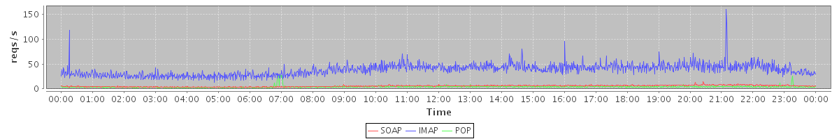 Host zm09.stanford.edu: Mailboxd: Request Rate by Client Protocol