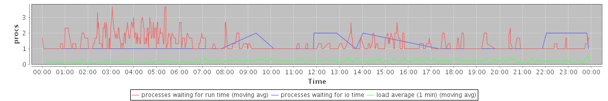 avg(processes waiting for run time) = 0.30 avg(processes waiting for io time) = 0.01 avg(load average (1 min)) = 0.22