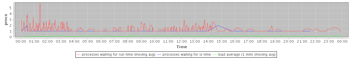 avg(processes waiting for run time) = 0.34 avg(processes waiting for io time) = 0.01 avg(load average (1 min)) = 0.13