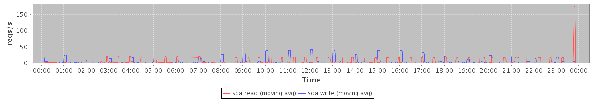 avg(sda read) = 29.07 avg(sda write) = 402.42