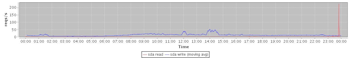 avg(sda read) = 0.13 avg(sda write) = 13.67
