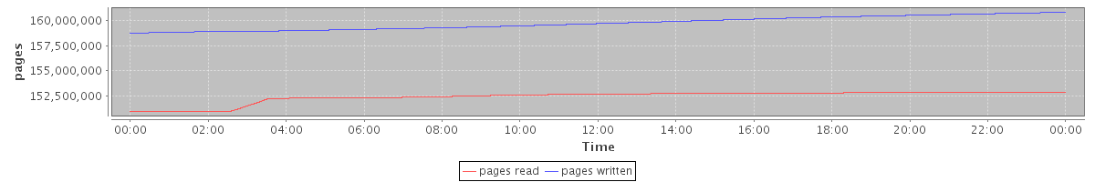 avg(pages read) = 152452006.98 avg(pages written) = 159714565.58